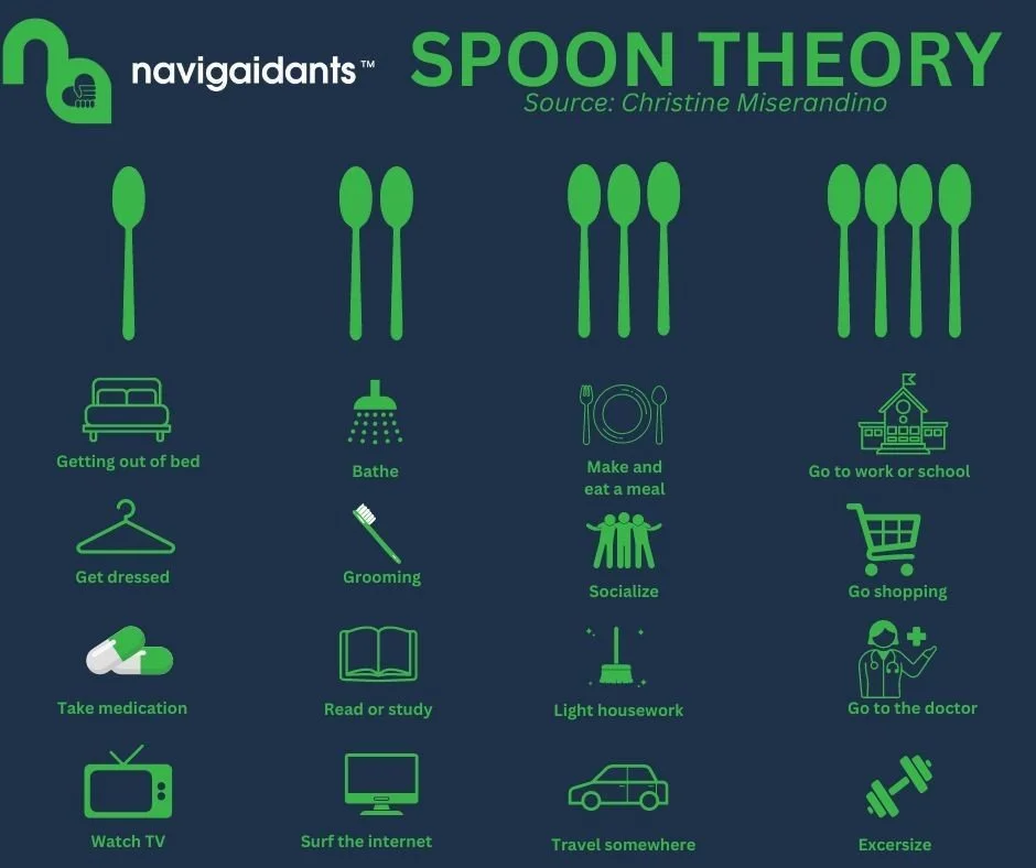 Spoon Theory was imagined by Christine Miserandino in 2003 when describing what it is like living with a chronic illness.